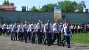 Огляд-конкурс розпочався урочистим маршем колони барабанщиць Міжрегіонального центру ПТО художнього моделювання та дизайну. Учасники свята щиро вітали почесного гостя: Петра Галаса – ветерана УПА. Привітав учасників свята головний спеціаліст управління професійно-технічної освіти Руслан Борисов. Захід відбувся на високому рівні, з глибоким вшануванням національних традицій, героїзму та патріотизму старших поколінь.