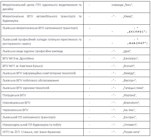 У змаганнях брали участь 16 навчальних закладів міста Львова та області, а саме: