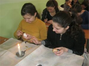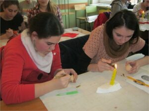Учні ознайомилися з історією виникнення писанкарства та регіональними особливостями орнаментального розпису й спробували створити свою неповторну писанку. Творчий процес захопив юних писанкарів і в аудиторії витав піднесений настрій. Магічні символи та розмаїті кольори зробили свою справу, адже писанки вийшли яскравими та неповторними.