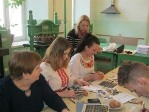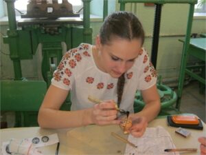 Учасниками уроку писанкарства стали учні, що займаються на гуртку «Художнє оформлення книги» під керівництвом Чугуєвець О.М., а також діти сироти та переселенці зі Сходу. З превеликим натхненням та старанністю молодь вимальовувала магічні знаки писанкового орнаменту: ружі, зірки, ромби , які дійшли до нас з прадавніх часів. Безперечно, це знаки спілкування наших пращурів з природою, з тим духовним началом, яке оберігає від лихого і дарує Божу ласку усім.