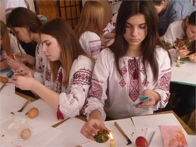 На тлі звичайного білого яйця юні писанкарі виводили українські орнаменти та магічні знаки, адже цей звичай прийшов до нас з сивої давнини. Великодні писанки є вісником добра, надії, радості, що реалізуються в символах, лініях та візерунках. Треба мати велике терпіння та любов, глибокий розум, шанувати народні звичаї, аби творити писанку.