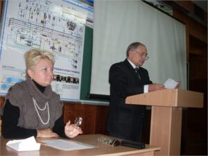 Кандидат технічних наук Яворський М.С. розповів про реорганізацію структур з винахідництва, раціоналізації та патентної справи, необхідність створення бізнес інноваційного центру, який би співпрацював у спільному проекті з профтехосвітою, а також створення експериментального майданчика з виготовлення діючих моделей.