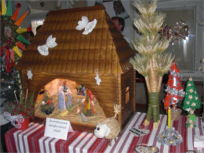 Кожний навчальний заклад представив різдвяну шопку, дідуха, павука та вертепну зірку, які виготовлені з традиційних та нетрадиційних матеріалів, зокрема: дерева, моху, камінців, паперу, картону, очерету, пінопласту, тканини, ниток, кори, зерен пшениці, коктейльних трубочок та ін. Творчих зусиль учнівська молодь докладала до виготовлення всіх експонатів, які без перебільшення можна назвати мистецькими витворами. Чого тільки вартують: дідух плетений косичками із сіна; солом’яний або паперовий павук гармонійної форми; шопка, в якій різдвяні персонажі вишиті кольоровими нитками, а її стріха надзвичайно майстерно складена із сухого очеретяного цвіту.