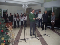 Виступив начальник управління логістики Західного регіону ПАТ «Укрсоцбанку» Теслер Олександр Сергійович та подякував за цікаві різдвяні композиції, які прикрашали інтер’єр банку в продовж місяця. Оголосив підсумок конкурсу глядацьких симпатій у номінаціях: