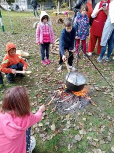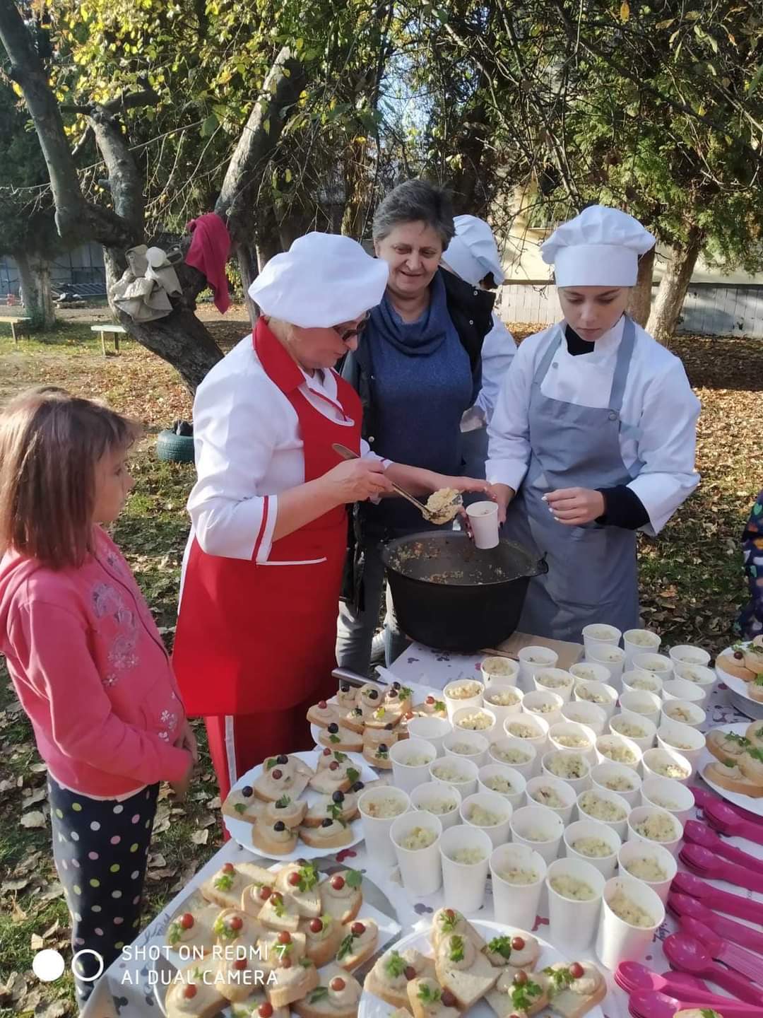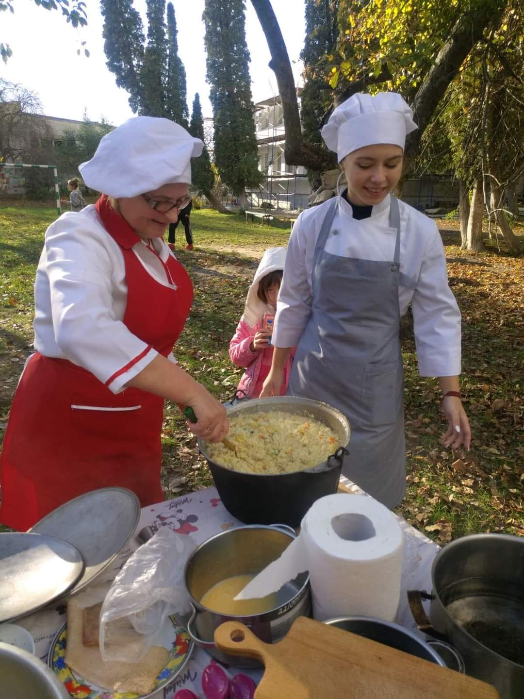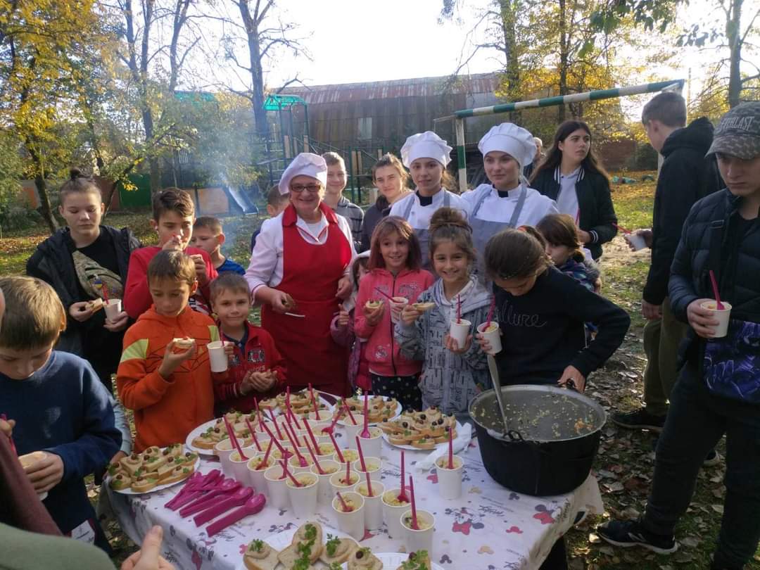 У дворі Притулку для сиріт СуСД ЛОДА працівники Будинку техніки з керівником гуртка Січиокно Галиною Іванівною, гурток “Здорове харчування” (ЛВПУТСП) готували козацький куліш в казані на вогнищі під відкритим небом для дітей переселених із Східних областей України.