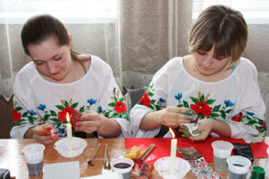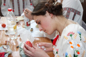 Юні писанкарі впродовж 2-х академічних годин розписували писанки, демонструючи свої знання та вміння у різних техніках: аплікація бісером, геометричний візерунок, етнічні символи, рослинний орнамент, розфарбовували їх у яскраві кольори.