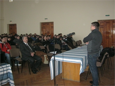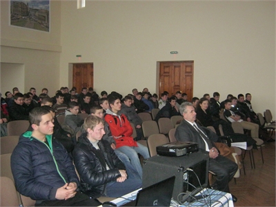 Завідувач відділом ЛДБТ Войтюк Володимир Володимирович, розповів про розвиток автомобільної промисловості в світі, цікаві та маловідомі факти про автомобілі та різноманітні технічні новинки в даній сфері. З доповіддю про вплив винаходів на наше життя та значення професії автомобіліста в Україні та світі до присутніх, звернувся завідувач лабораторією вібродіагностики ФМІ НАН України, кандидат технічних наук Юзефович Роман Михайлович, який наголосив на важливості постійного самовдосконалення майбутніх фахівців, які зможуть плідно працювати на українську промисловість. Наступним пунктом програми зустрічі стала демонстрація фільму “Українці – геніальний народ”, який був присвячений українським винахідникам, що ввійшли в історію людства, завдяки своїм досягненням. Після закінчення фільму практичний психолог Будинку техніки Сайка Оксана Іванівна завершила програму зустрічі розповіддю про значення психологічних факторів в діяльності винахідників та раціоналізаторів. У заключному слові заступник директора з виховної роботи Львівського ВППУ Качмар Галина Миронівна, дала коротку інформацію про розвиток технічної творчості в даному НЗ та подякувала організаторам за цікаву та змістовно проведений захід.