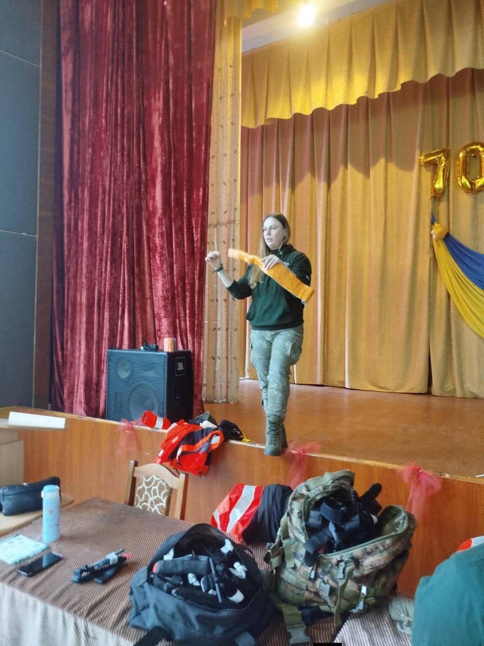 Навчання провела учасниця ГО військово-патріотичного вишколу «Патріот» Лучкова Марія — медик, інструктор з тактичної медицини. Учні отримали базові знання та необхідні навички для надання першої допомоги в екстремальних ситуаціях.